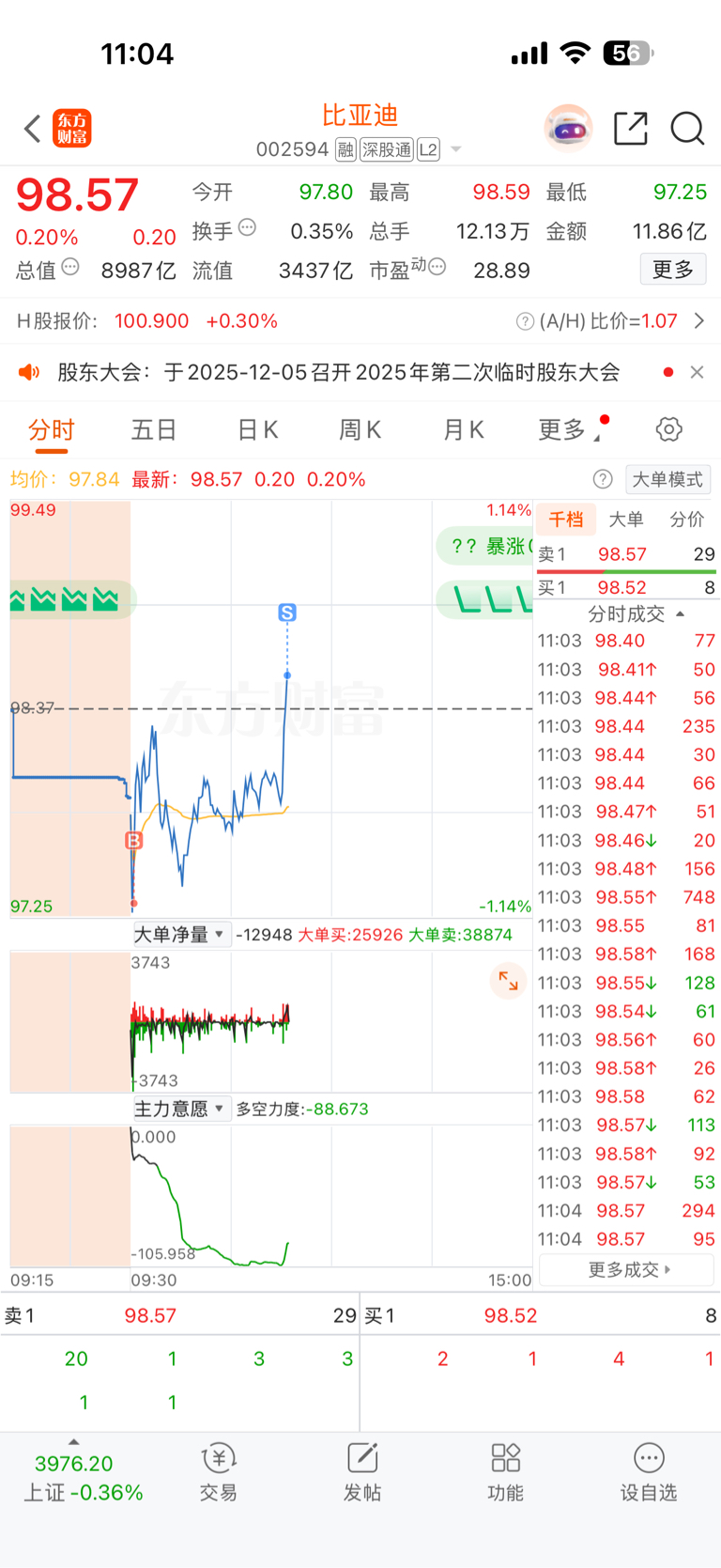 $比亚迪(SZ002594)$ 今天的t已做完 随便你涨跌