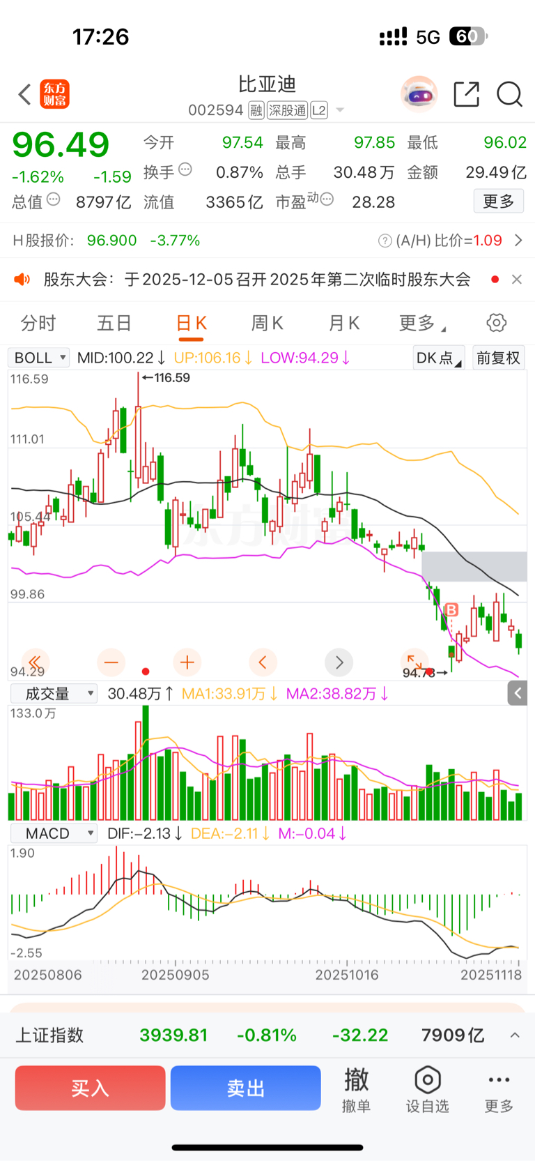 $比亚迪(SZ002594)$ 100没跑是我的错,想着比亚迪赚雅迪