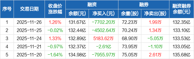 比亚迪:融资净偿还7702.2万元,融资余额131.67亿元(11-26)