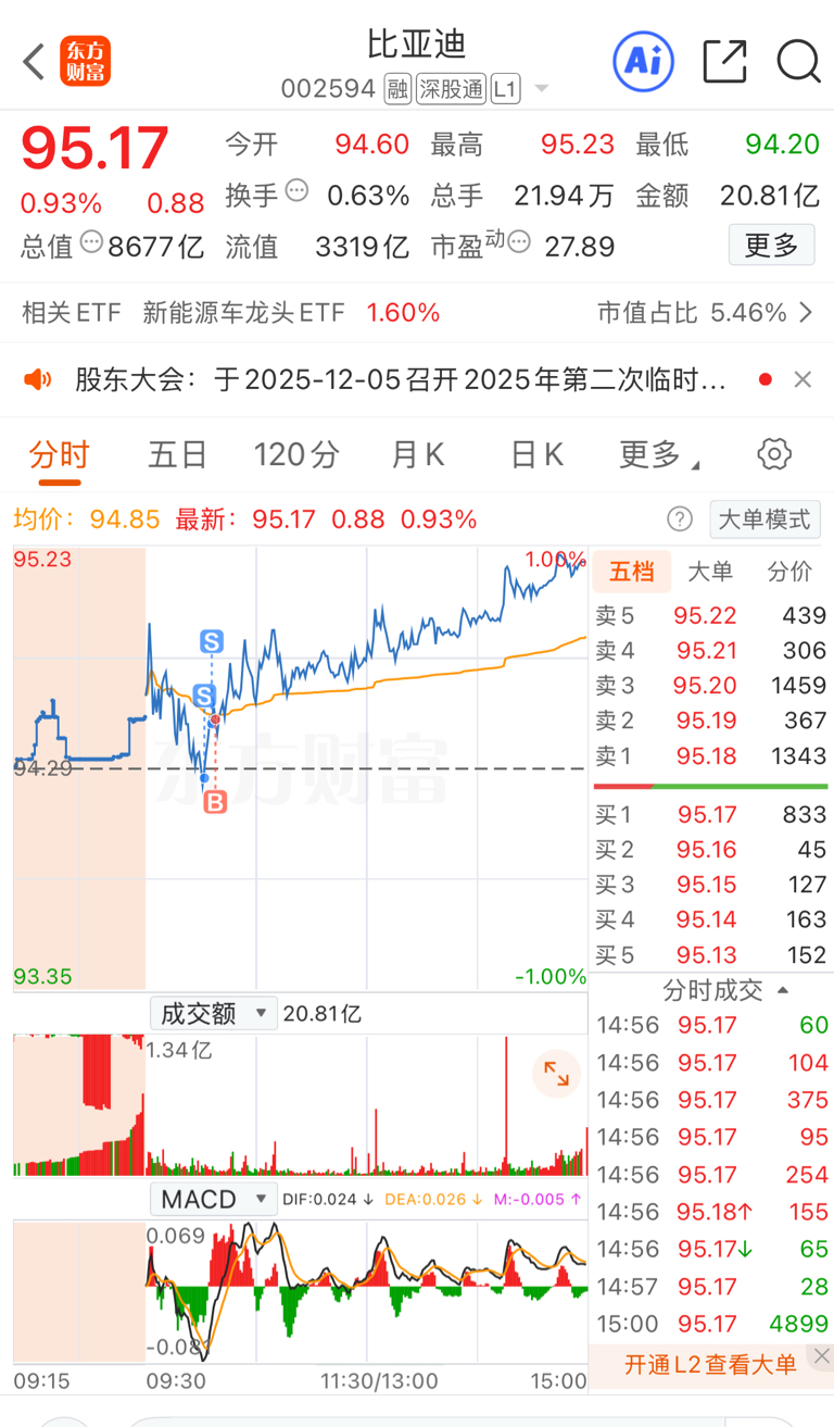 $比亚迪(SZ002594)$ 本来想t一下,感觉不对,立马买回来了。乱操作损失200多
