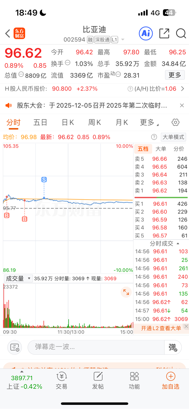 $比亚迪(SZ002594)$ 我也是佩服我自己,每次加仓都能加在最高点