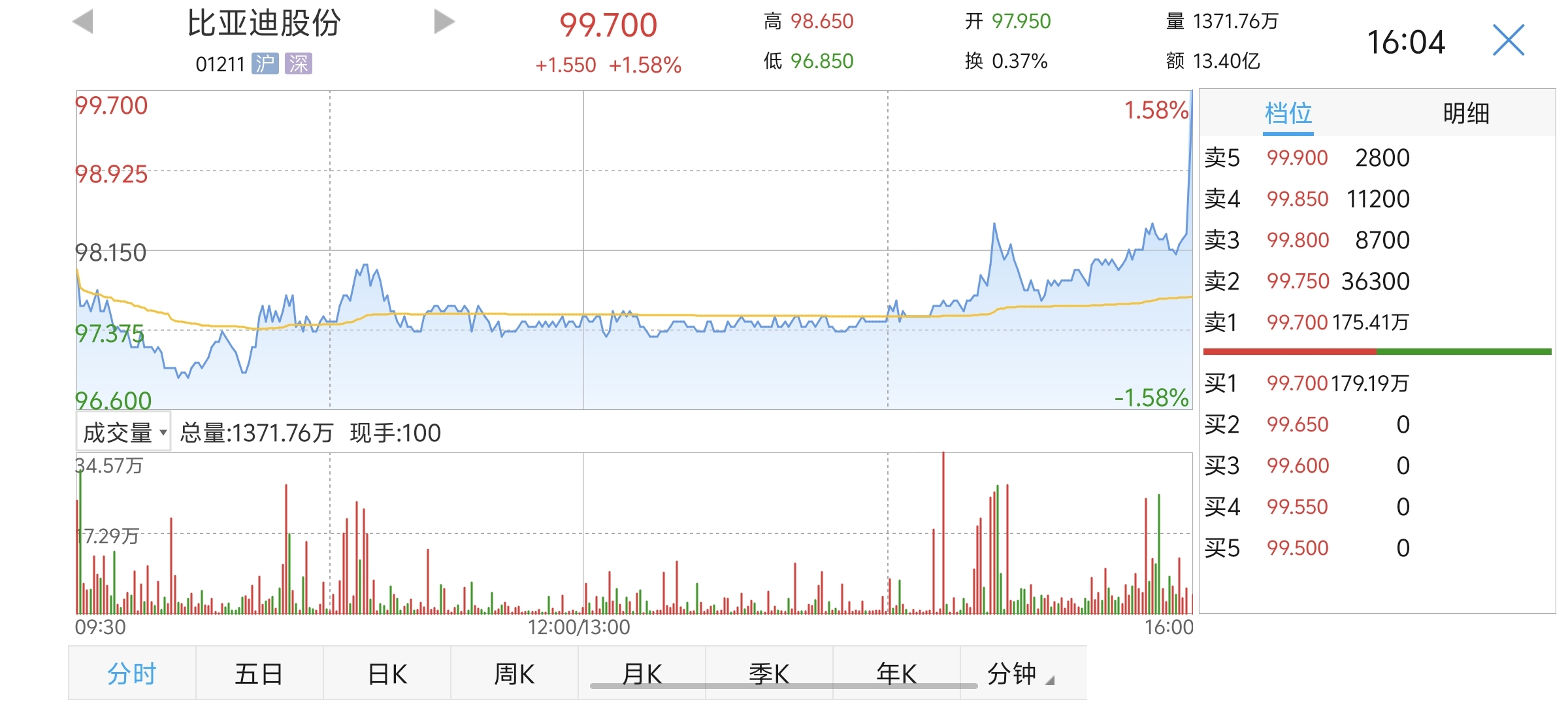 $比亚迪(SZ002594)$ 港股最后这是怎么了?直线上涨