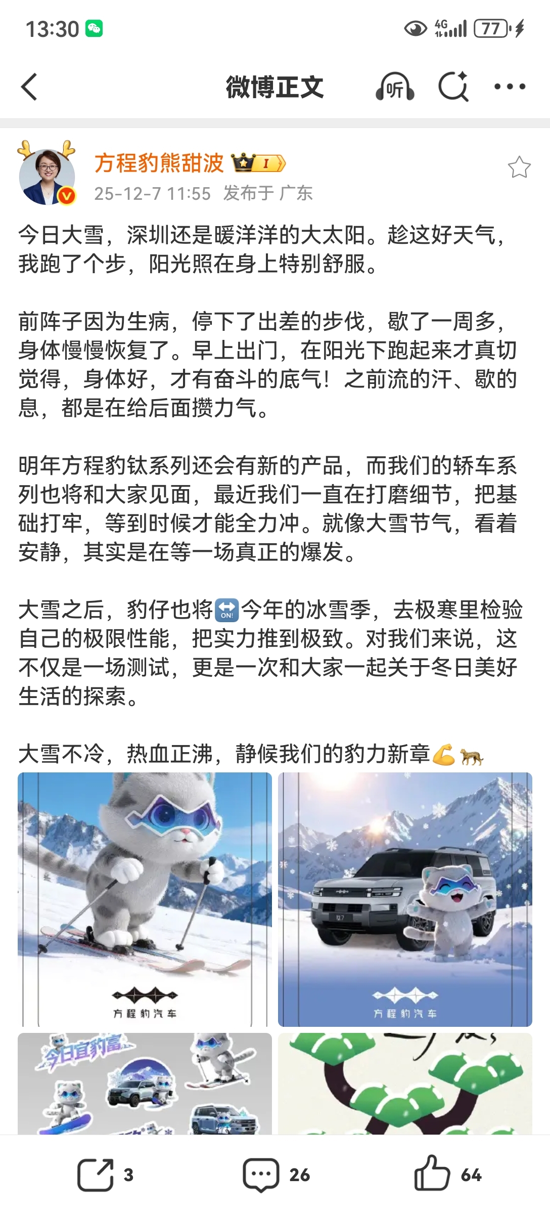 $比亚迪(SZ002594)$ 方程豹的销量是比亚迪汽车逐步向中高端迈进重要一环。期待方程豹有更多产品与消费者见面。
