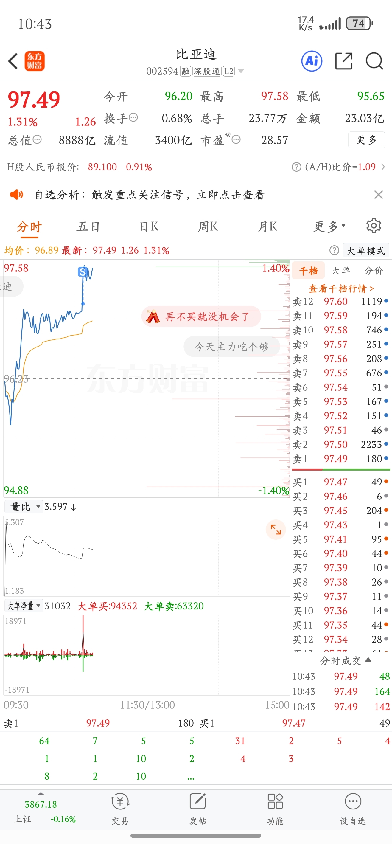 $比亚迪(SZ002594)$ mmb这又t飞了不t吧还不行t还容易t飞