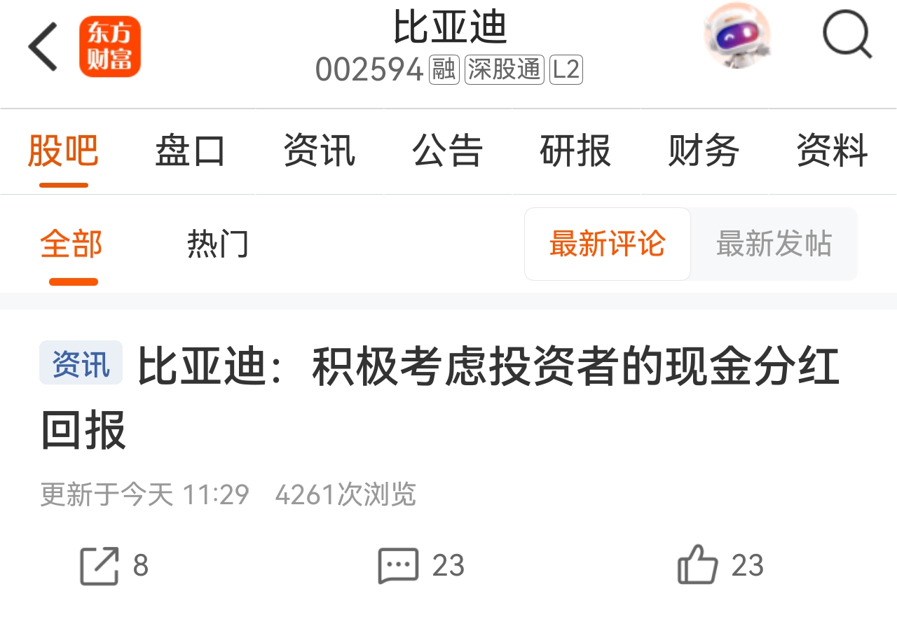 $比亚迪(SZ002594)$ 拆股是否可以看作是比亚迪配合机构,完成高位出货,共同收割韭菜的阴谋?现在对股价已经无能再提升,只能用分红来安慰被收割的股民。现在被套的韭菜只有两条路,要么割肉跑路,交出带血的筹码,要么留下来当长期股东,以时间换空间,拿分红,十年后自然能解套。