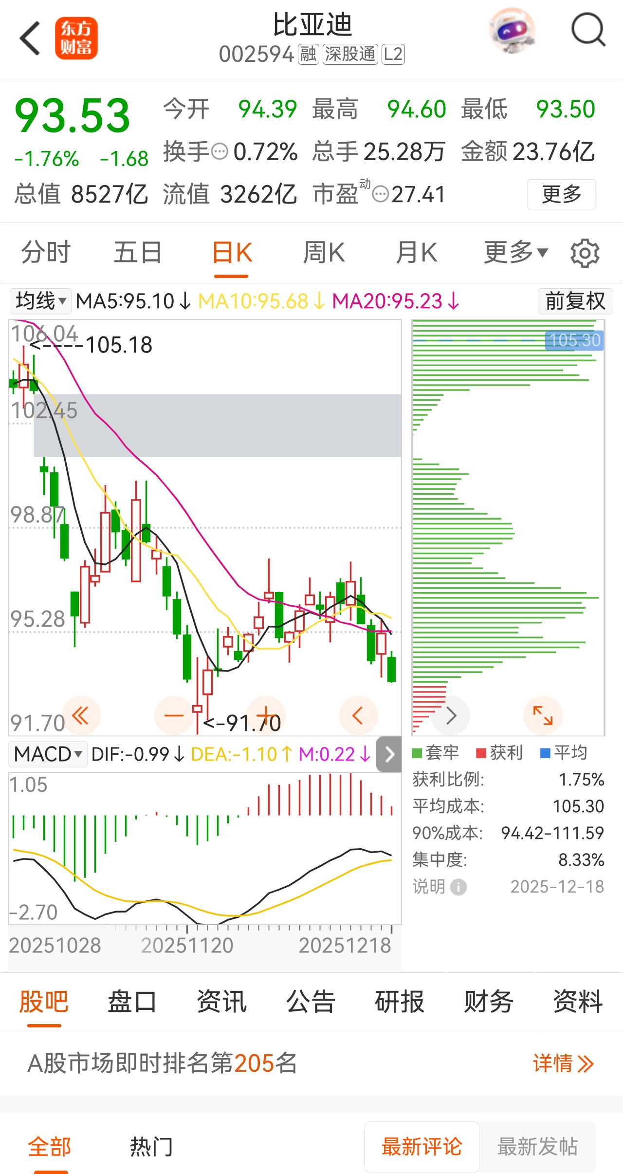 $比亚迪(SZ002594)$ 韭菜会加仓自救吗?草™的比亚迪。