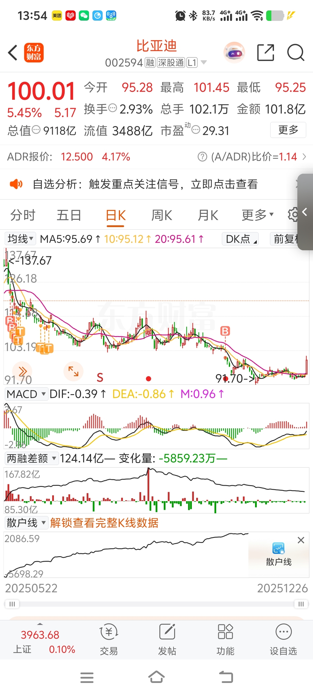 $比亚迪(SZ002594)$ 给你机会了,没顶用啊。给你几个月时间低成本筹码不顶用啊。目前119成本。