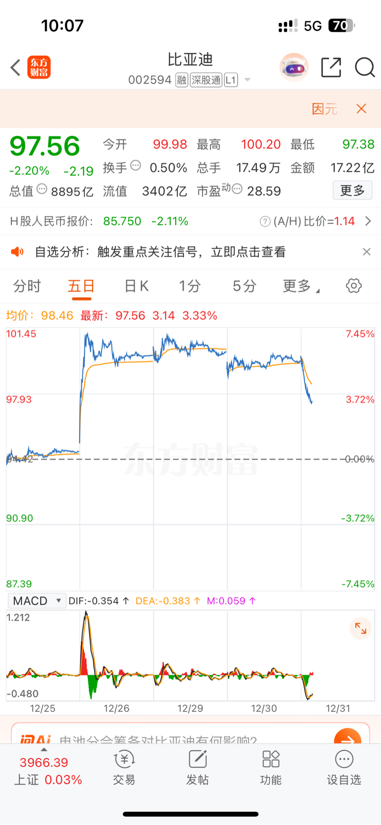 $比亚迪(SZ002594)$ 前几天有人说涨不过3天,之前还不信。现在看来一点也不假。