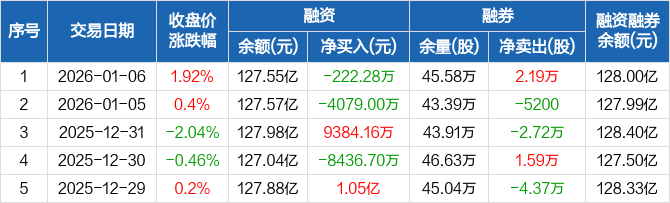 比亚迪:融资净偿还222.28万元,融资余额127.55亿元(01-06)