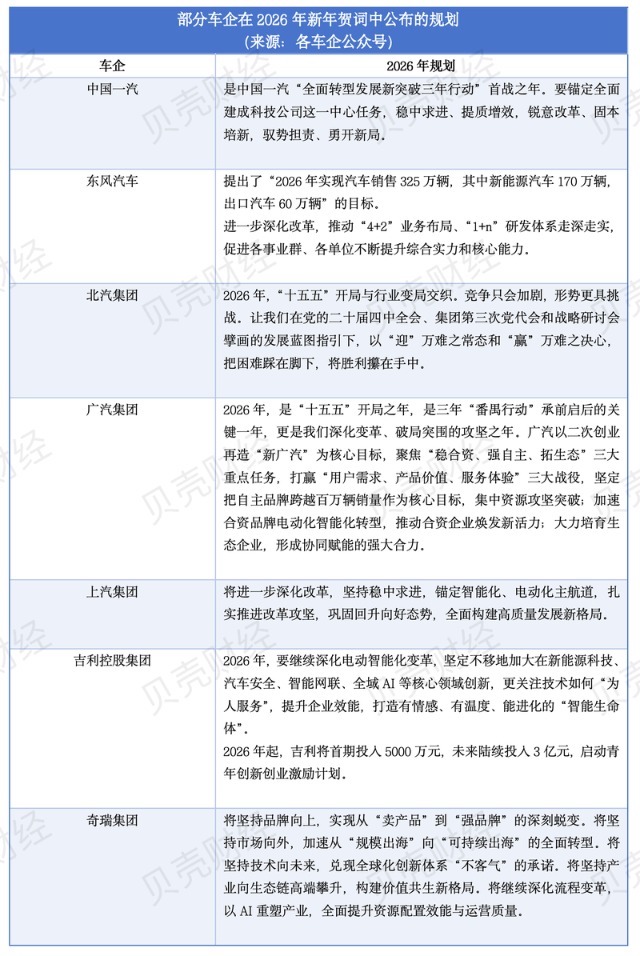 2026年,“竞争”仍是多家车企高层在新年致辞中高度聚焦的关键词,“竞争将加剧”已成为全行业共识。