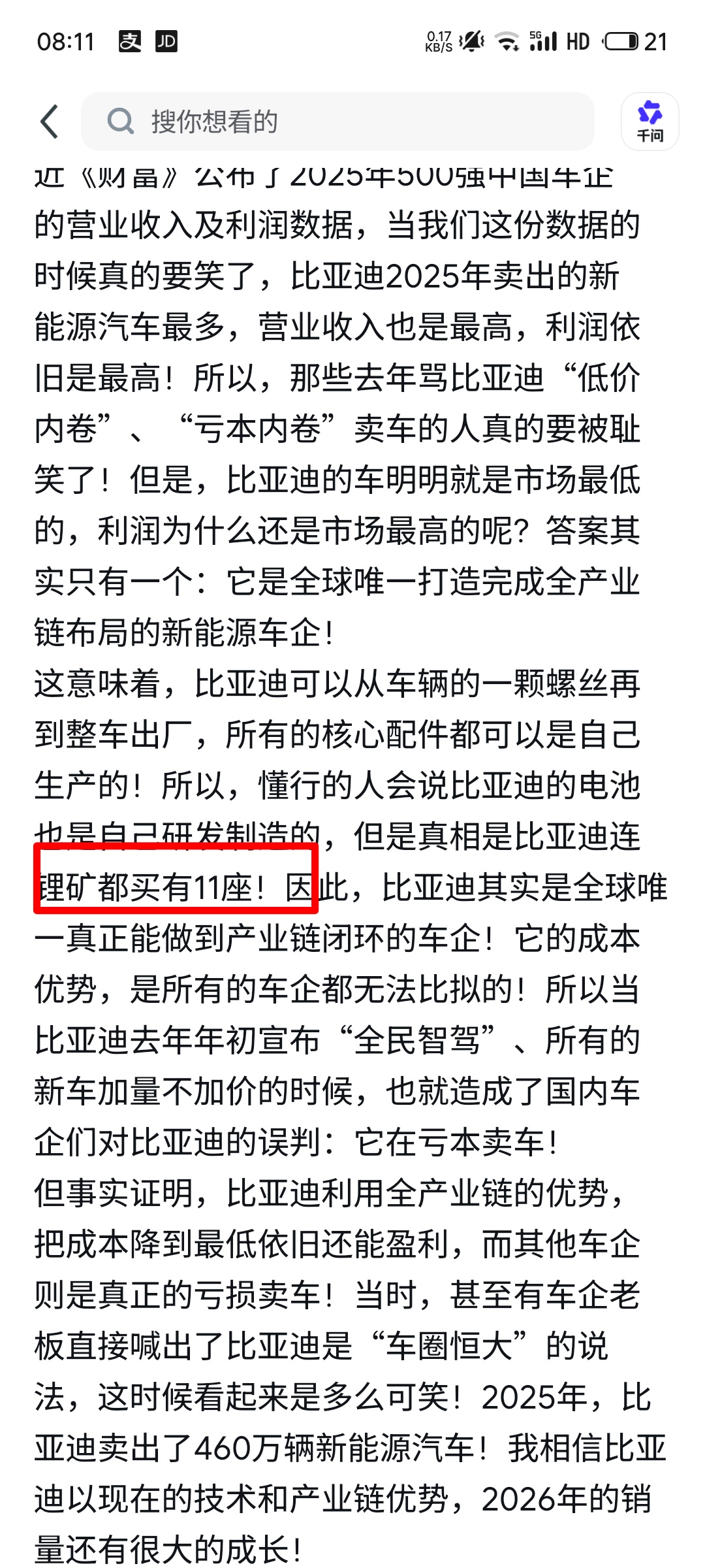 $比亚迪(SZ002594)$ 比亚迪有11坐锂矿