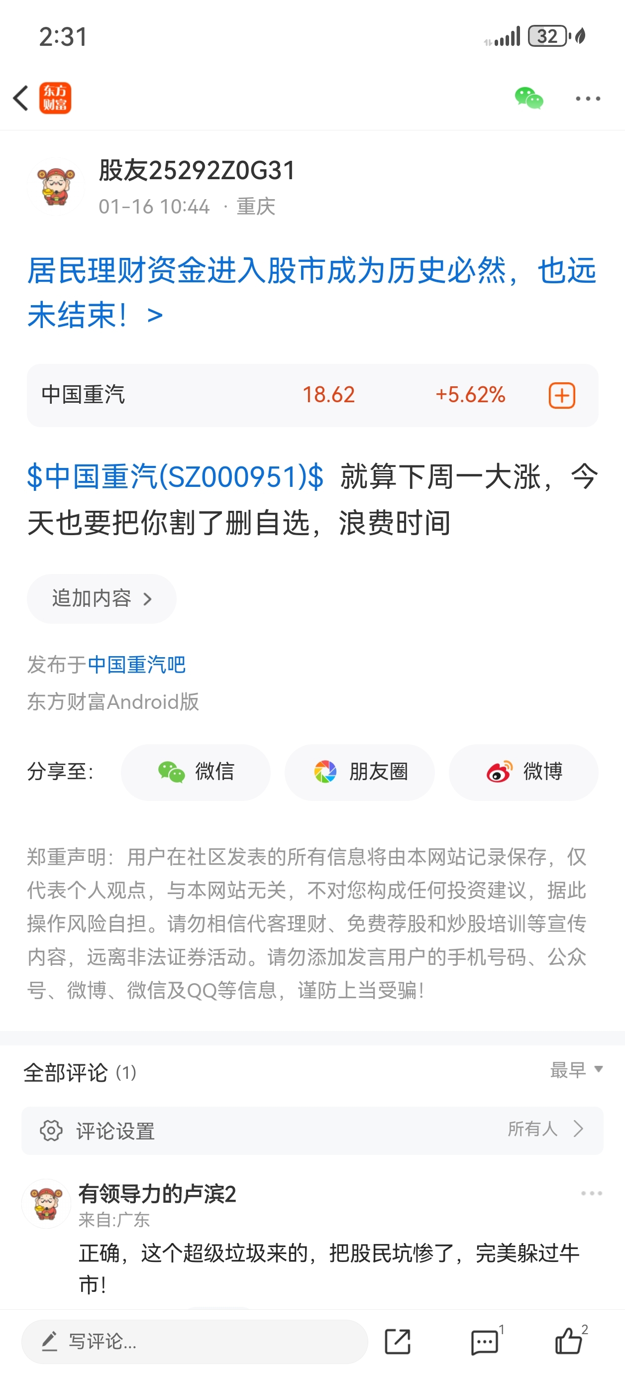 温馨提示: 1.根据《证券法》规定,禁止编造、传播虚假信息或者误导性信息,扰乱证券市场;2.用户在本社区发表的所有资料、言论等仅代表个人观点,与本网站立场无关,不对您构成任何投资建议。用户应基于自己的独立判断,自行决定证券投资并承担相应风险。《东方财富社区管理规定》