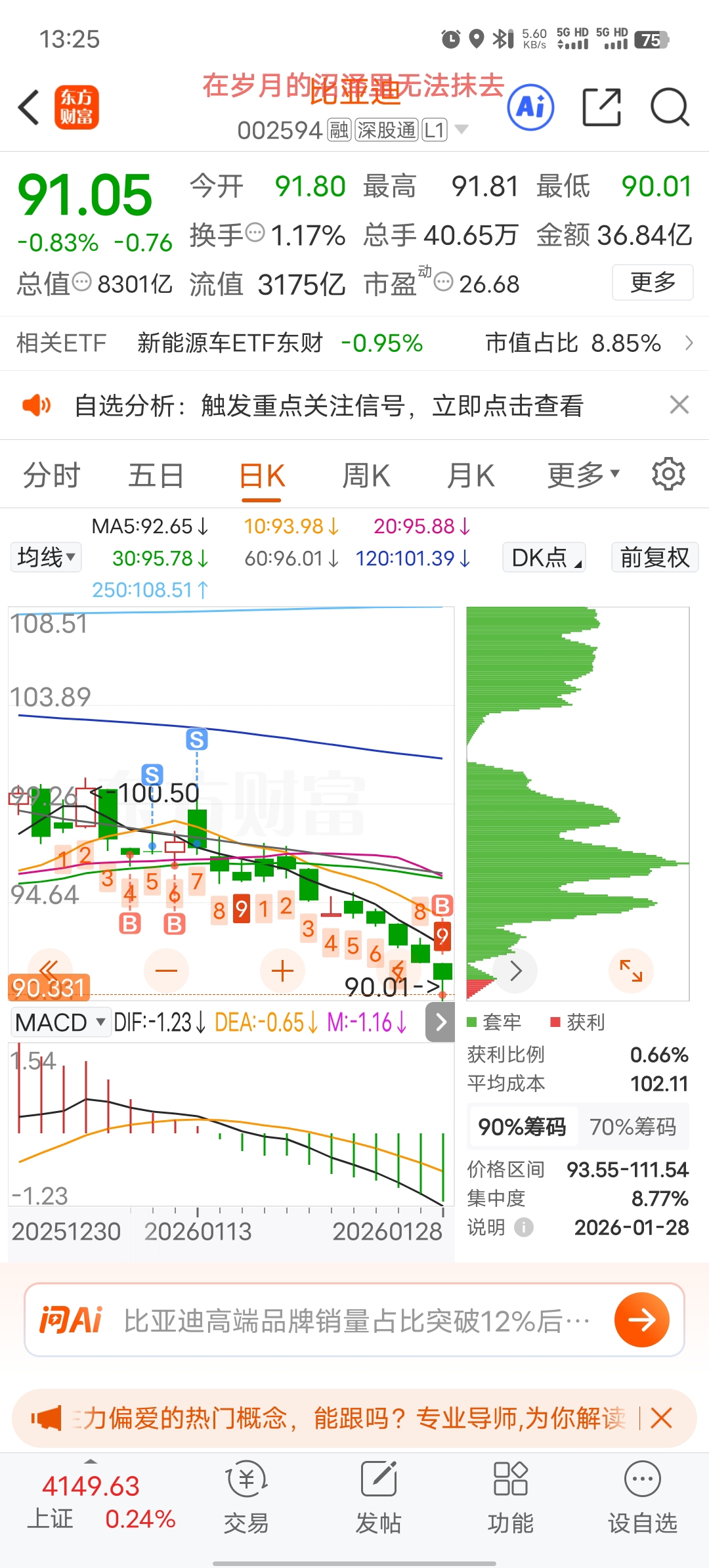 $比亚迪(SZ002594)$ 加油啊笛子!