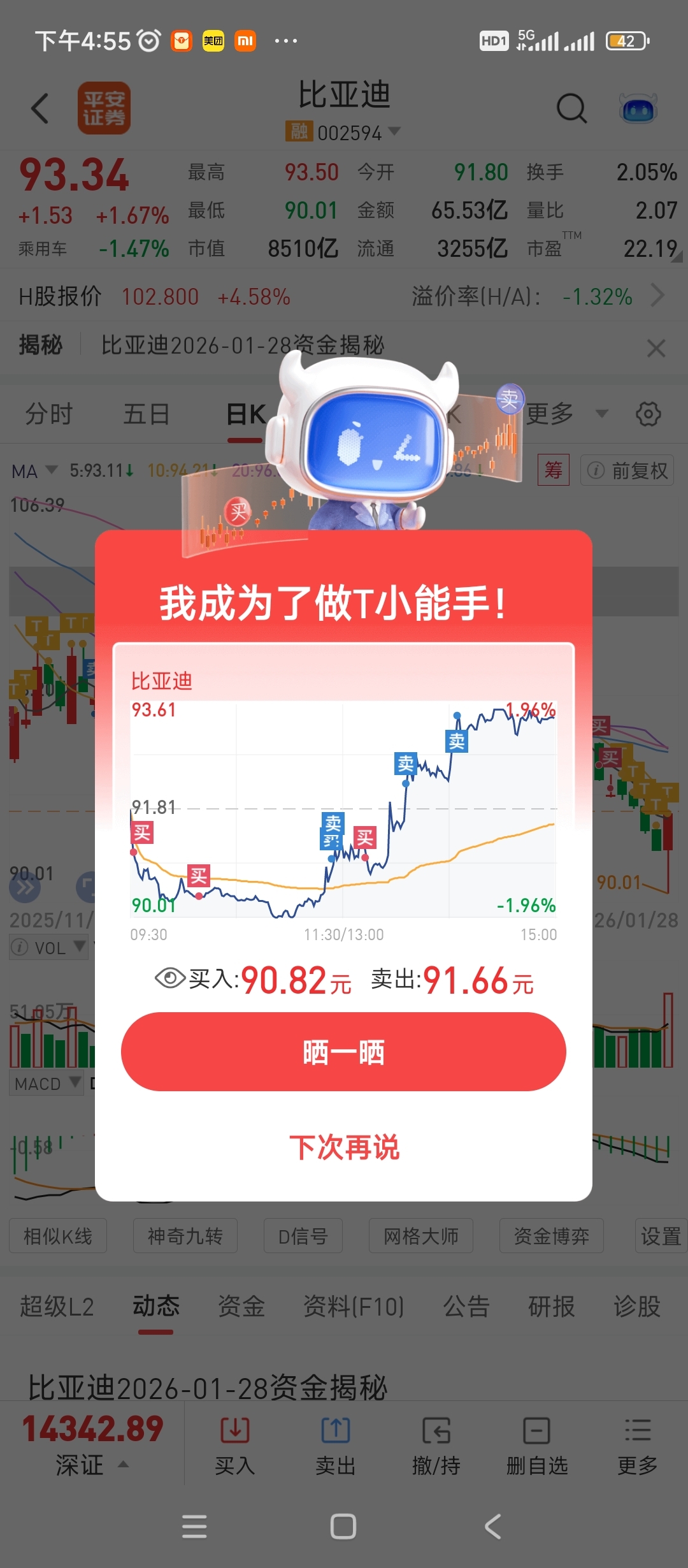 $比亚迪(SZ002594)$ 做了个T顺便减了三分之一
