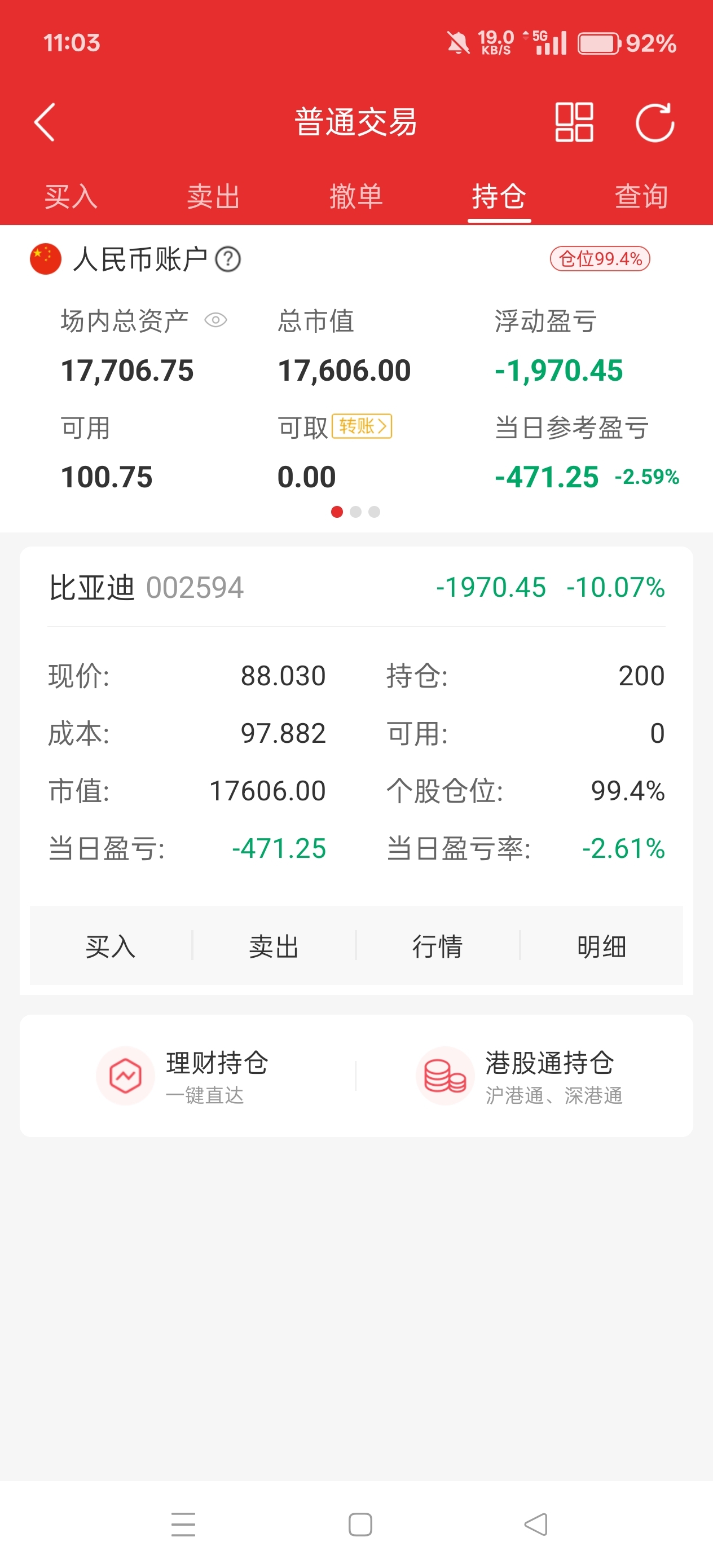 相当于吃了个跌停板,明天看看有没有更低价格,要不要加两手