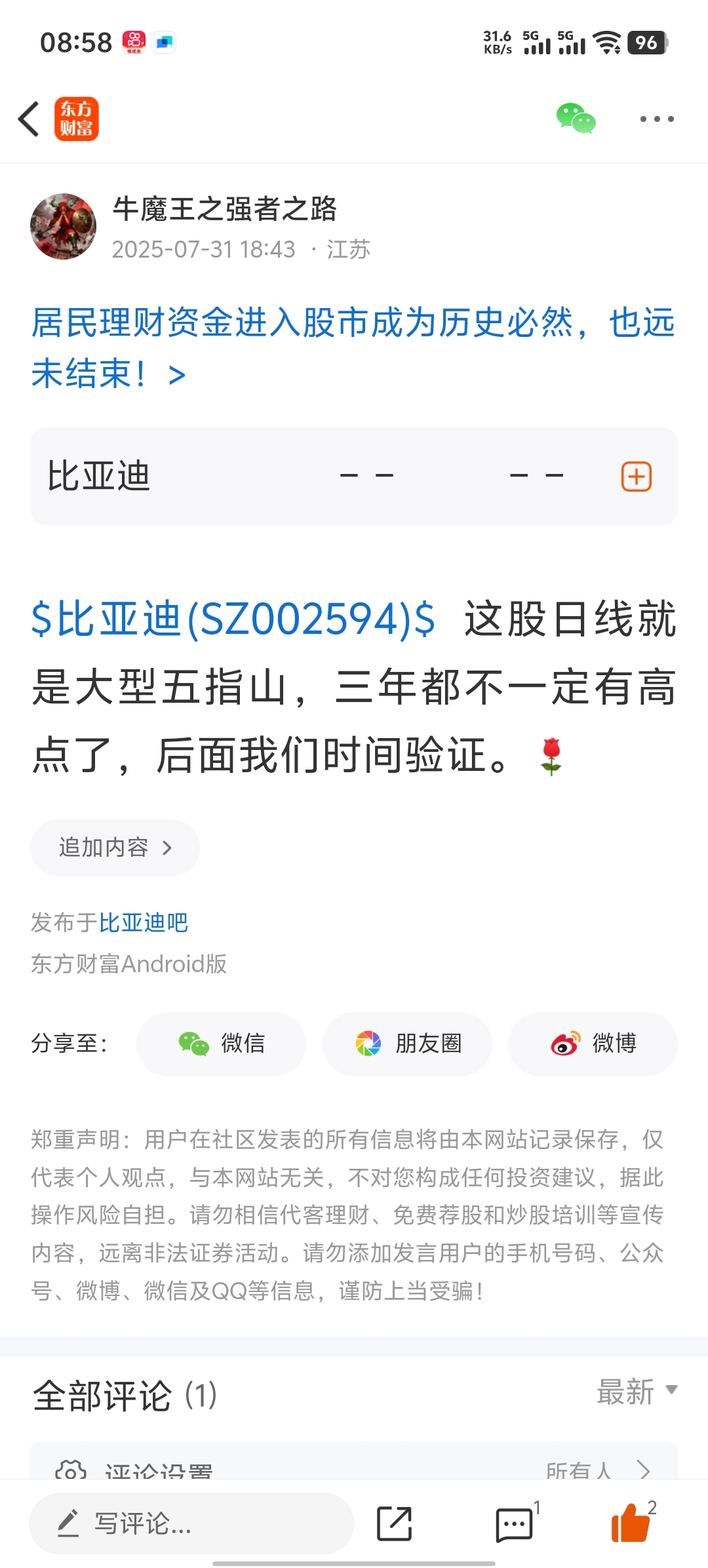 温馨提示: 1.根据《证券法》规定,禁止编造、传播虚假信息或者误导性信息,扰乱证券市场;2.用户在本社区发表的所有资料、言论等仅代表个人观点,与本网站立场无关,不对您构成任何投资建议。用户应基于自己的独立判断,自行决定证券投资并承担相应风险。《东方财富社区管理规定》