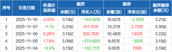 豪迈科技:融资净偿还744.59万元,融资余额3.13亿元(11-10)