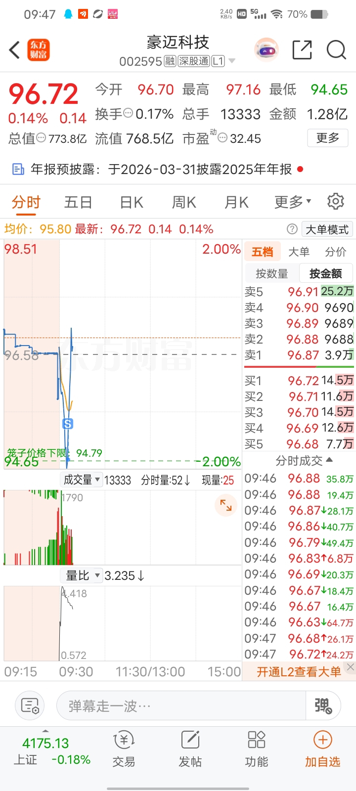 $豪迈科技(SZ002595)$ 真邪门