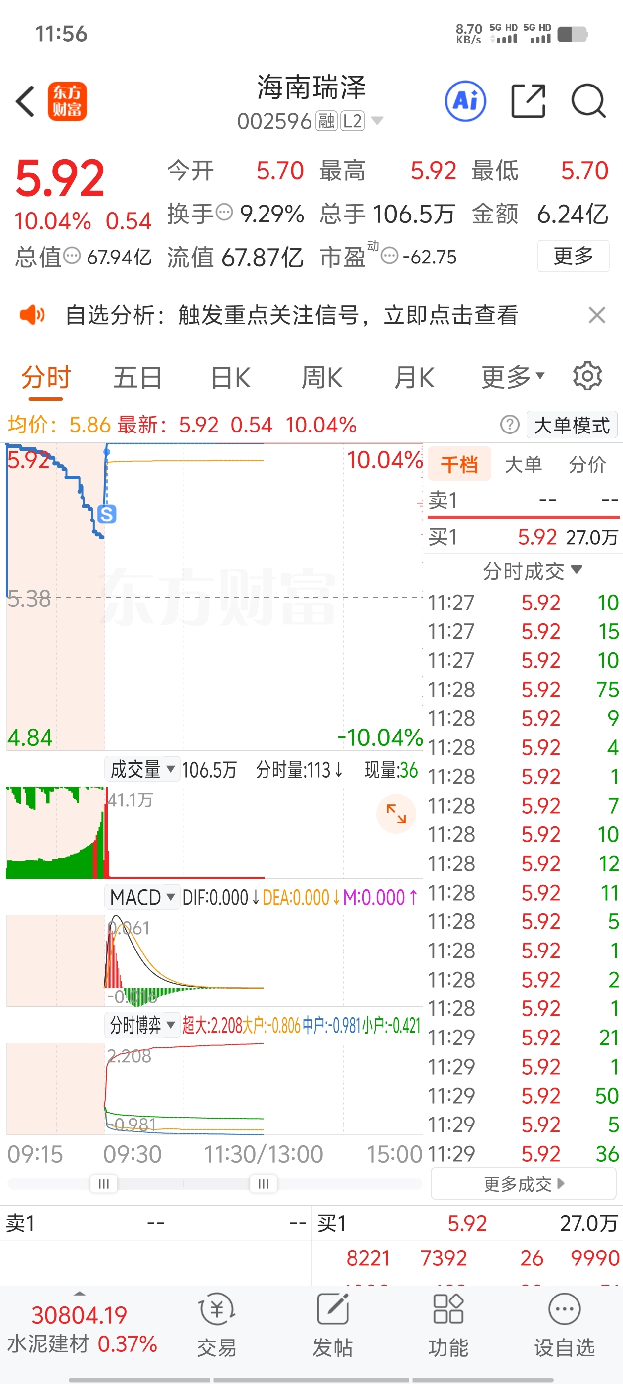 $海南瑞泽(SZ002596)$ 怎么回事?昨晚焦虑一晚上没睡好。每次都是这样拿不住一只股票!服了自己。