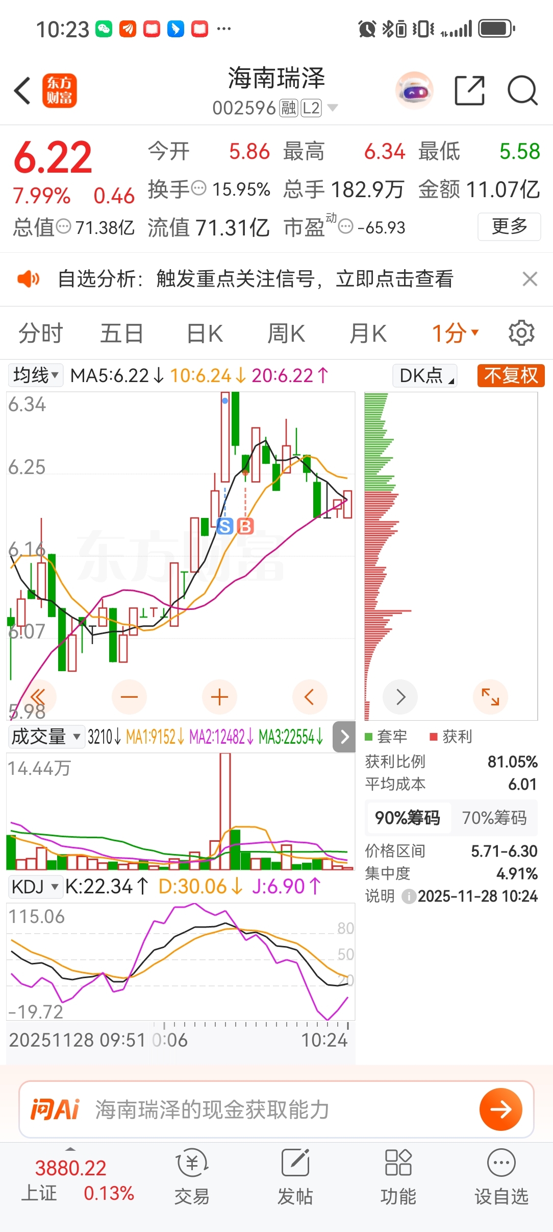 $海南瑞泽(SZ002596)$ SB战法,买点不对啥都白费