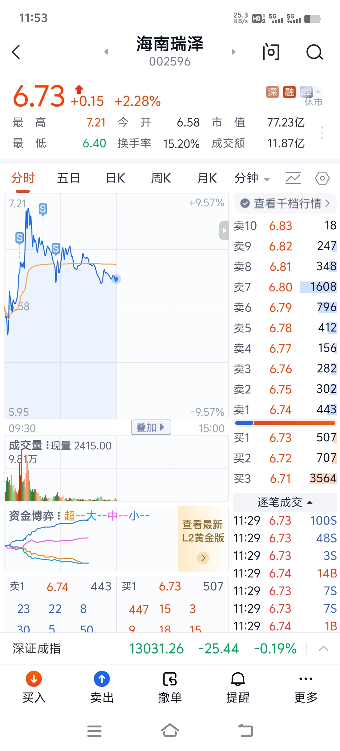 $海南瑞泽(SZ002596)$ 贪心想涨停,最终两个点走了