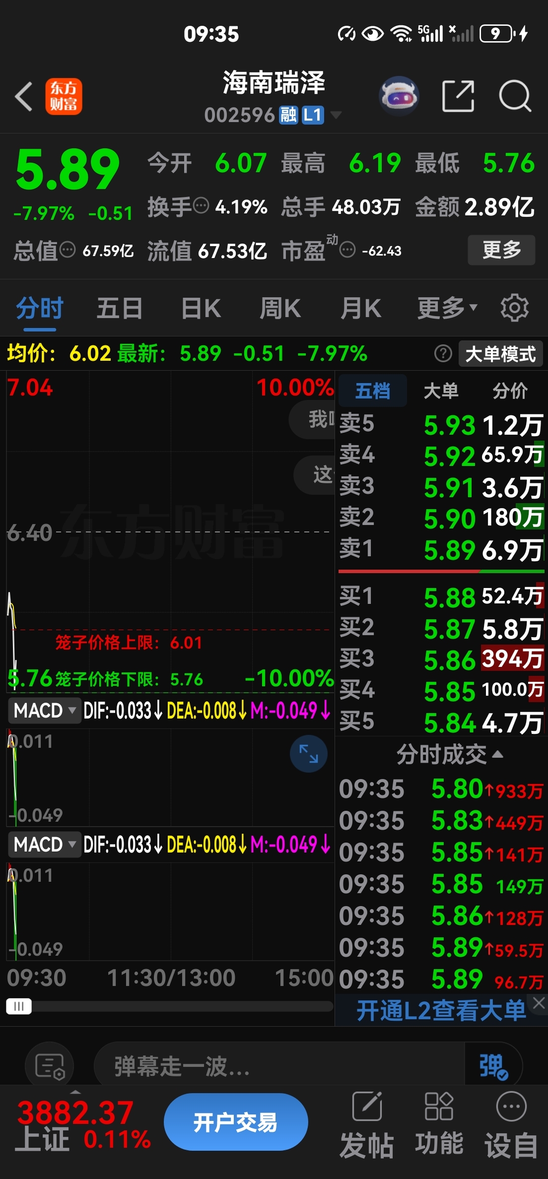 (割肉榕基软件抄底海南瑞泽)我不是常胜将军,,但是喜欢抄底,海南瑞泽昨天冲过7元