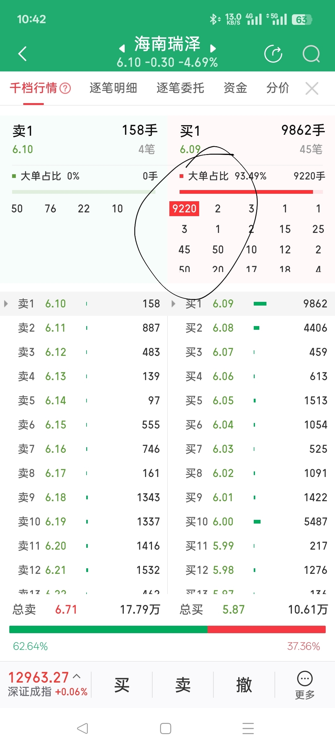 $海南瑞泽(SZ002596)$ 这么大单买进都涨不了