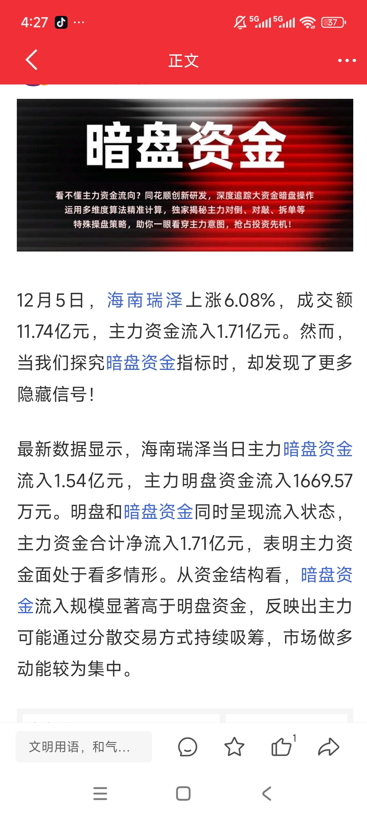 $海南瑞泽(SZ002596)$ 主力资金暗盘流入1.54亿,看来下周一要高开暴力拉升了