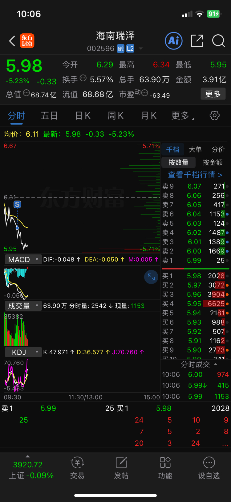 $海南瑞泽(SZ002596)$ 竞价就不达预期了,没有第一时间割肉。无法克服自己人性啊!