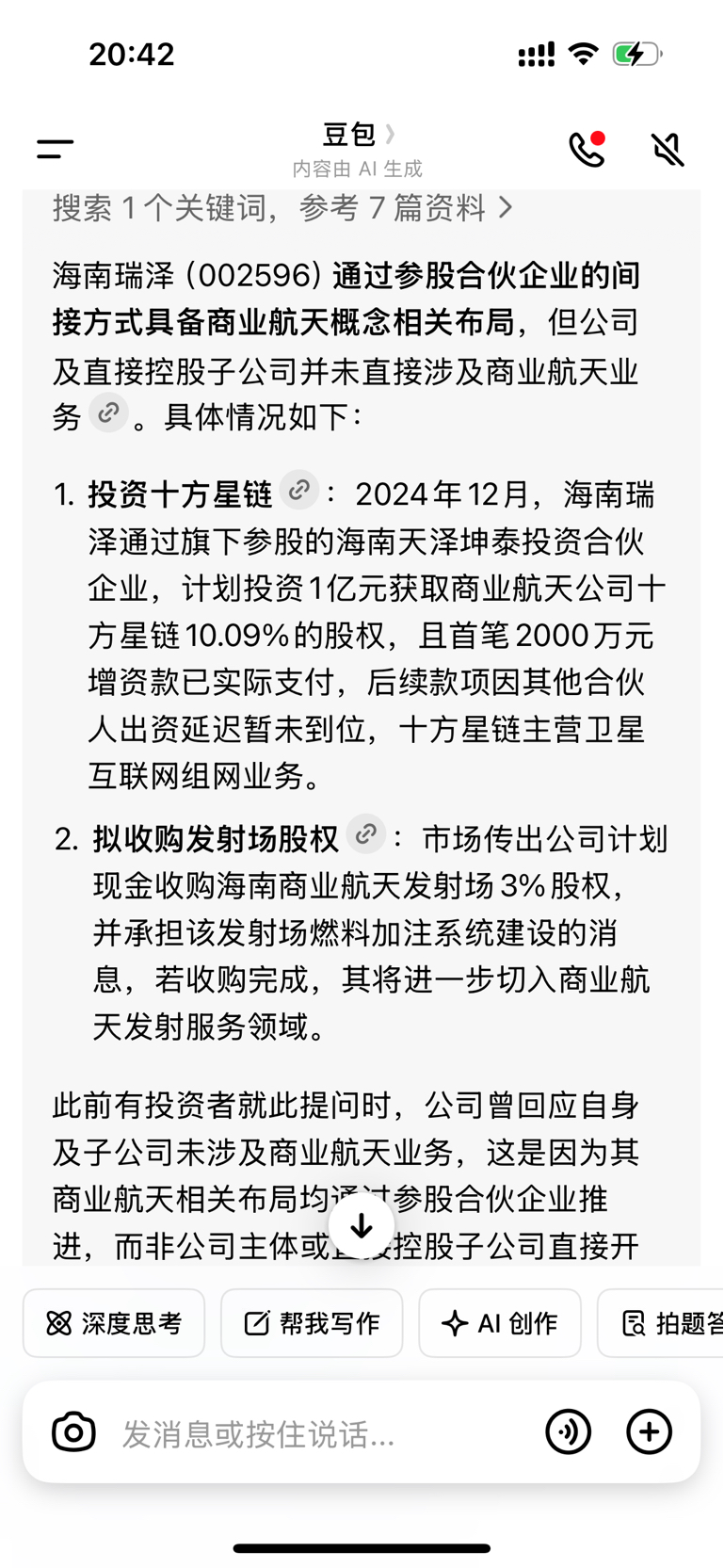 $海南瑞泽(SZ002596)$ 难怪涨停,你是有商业航天的概念啊
