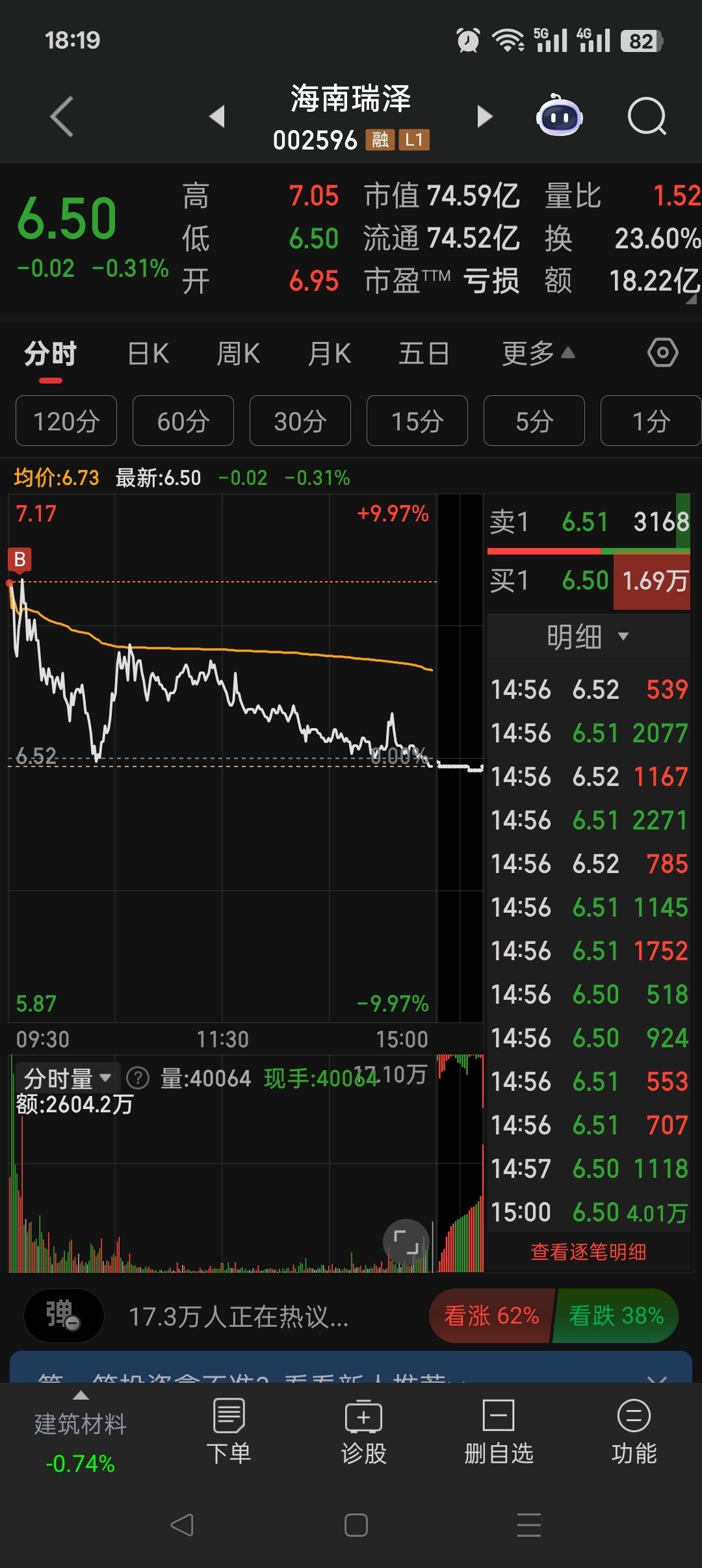 其实今天瑞泽已经很坚挺了,最最后才水下,海南板块上涨先罗牛和瑞泽,只有大盘不好的