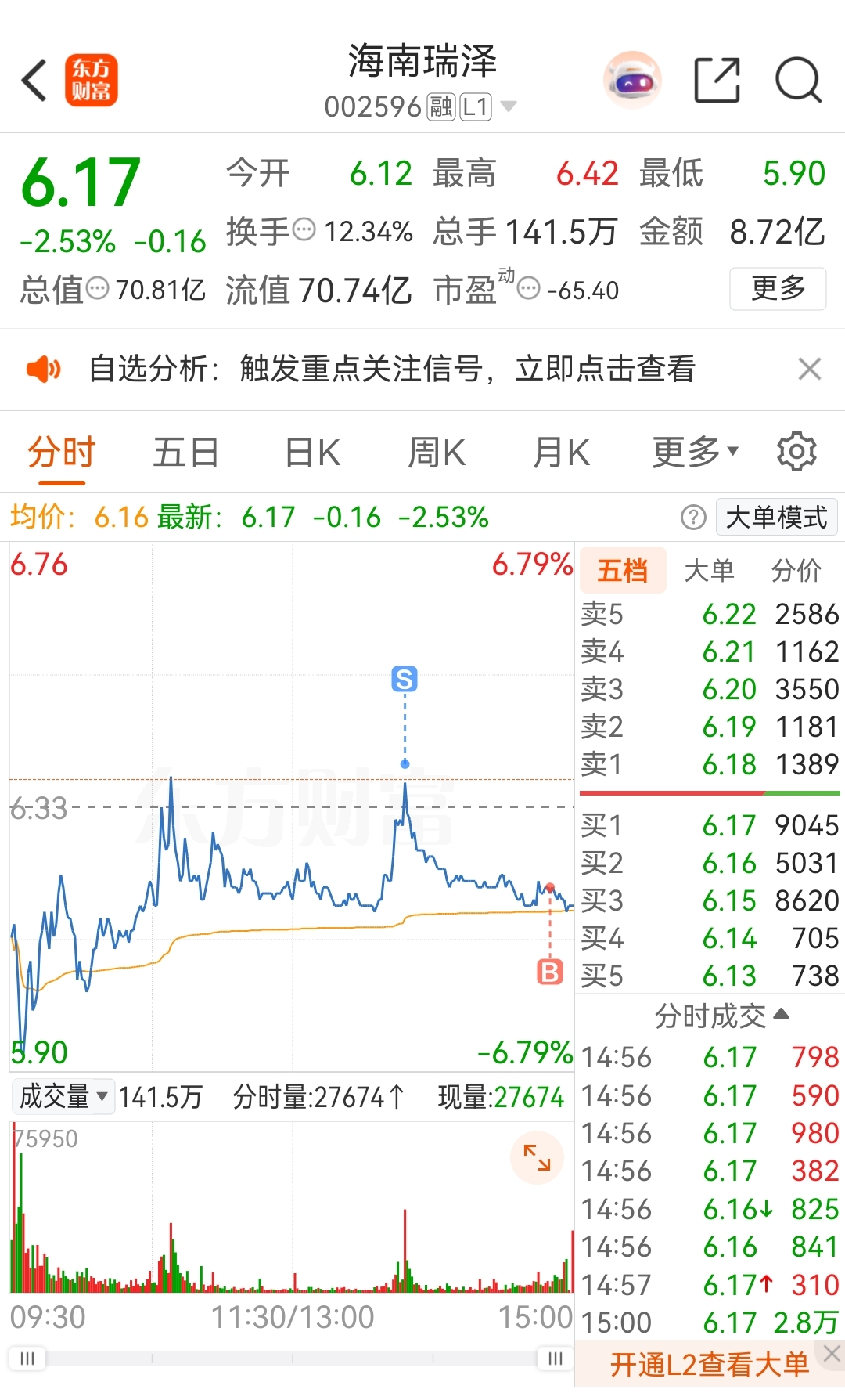 $海南瑞泽(SZ002596)$ 每天一T,不要格局,长高了就卖,跌狠了就加仓,怕个毛!