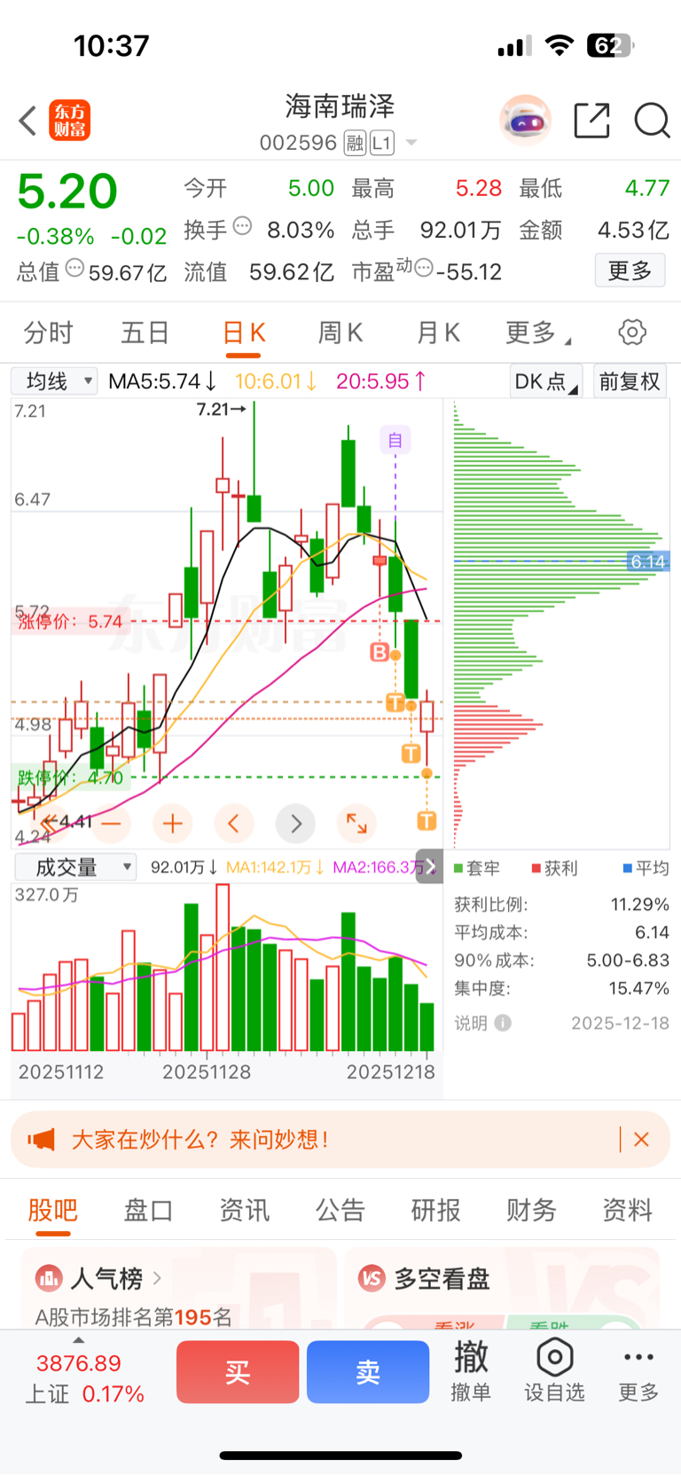 $海南瑞泽(SZ002596)$ 继续,我回本了