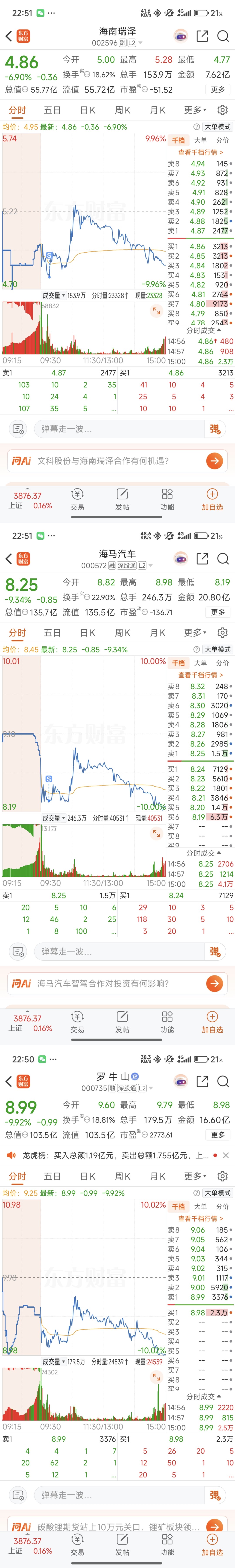 兄弟们,我清仓了,再也不碰海南股了,都是一个主力在出货割韭菜