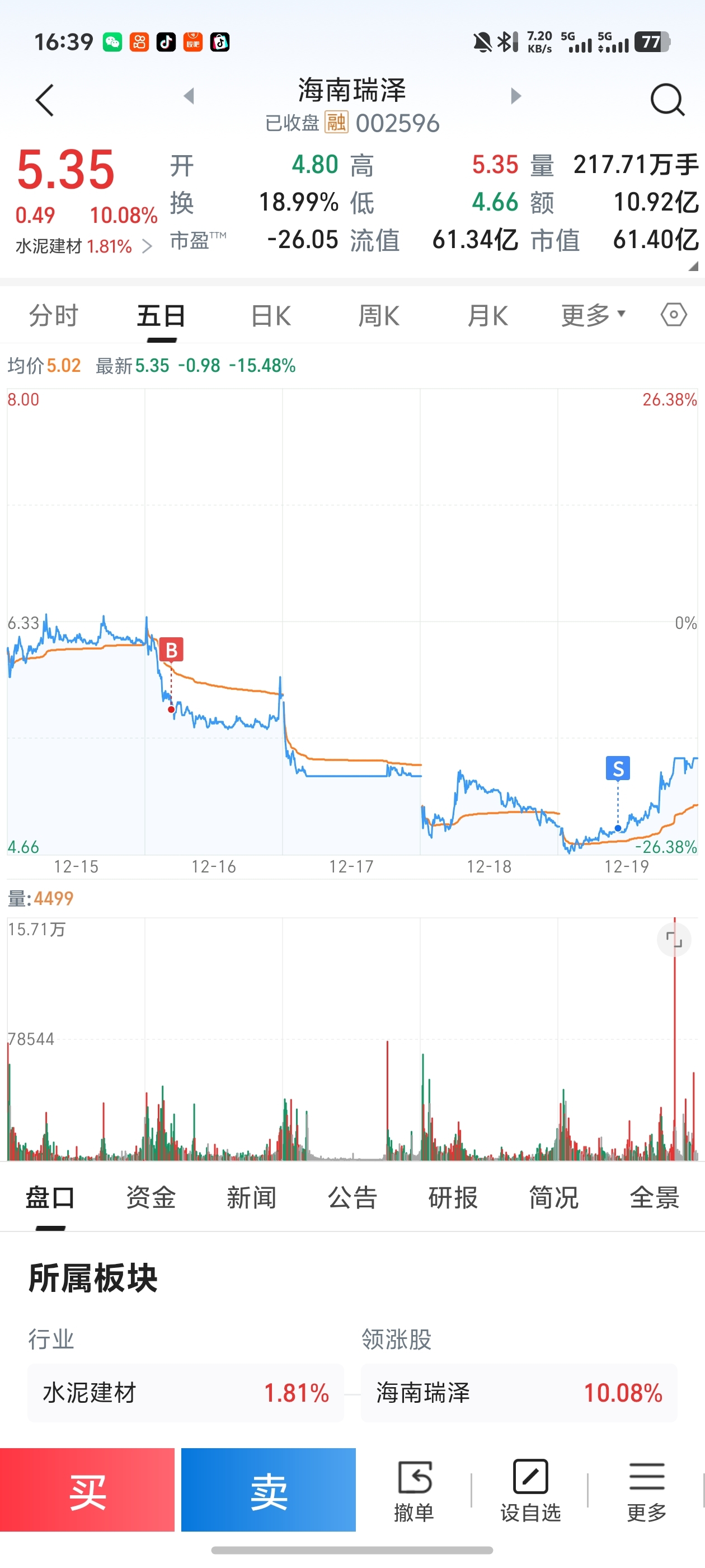 $海南瑞泽(SZ002596)$ 真的是天生韭菜圣体,一买就跌停,一卖就涨停