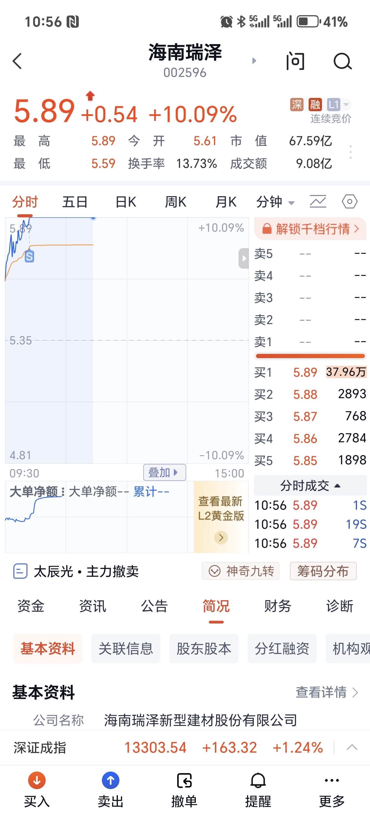 $海南瑞泽(SZ002596)$ 第一次涨停来什么板啊?给我洗走了,不过也好又进了600734实达集团又挣了两个点