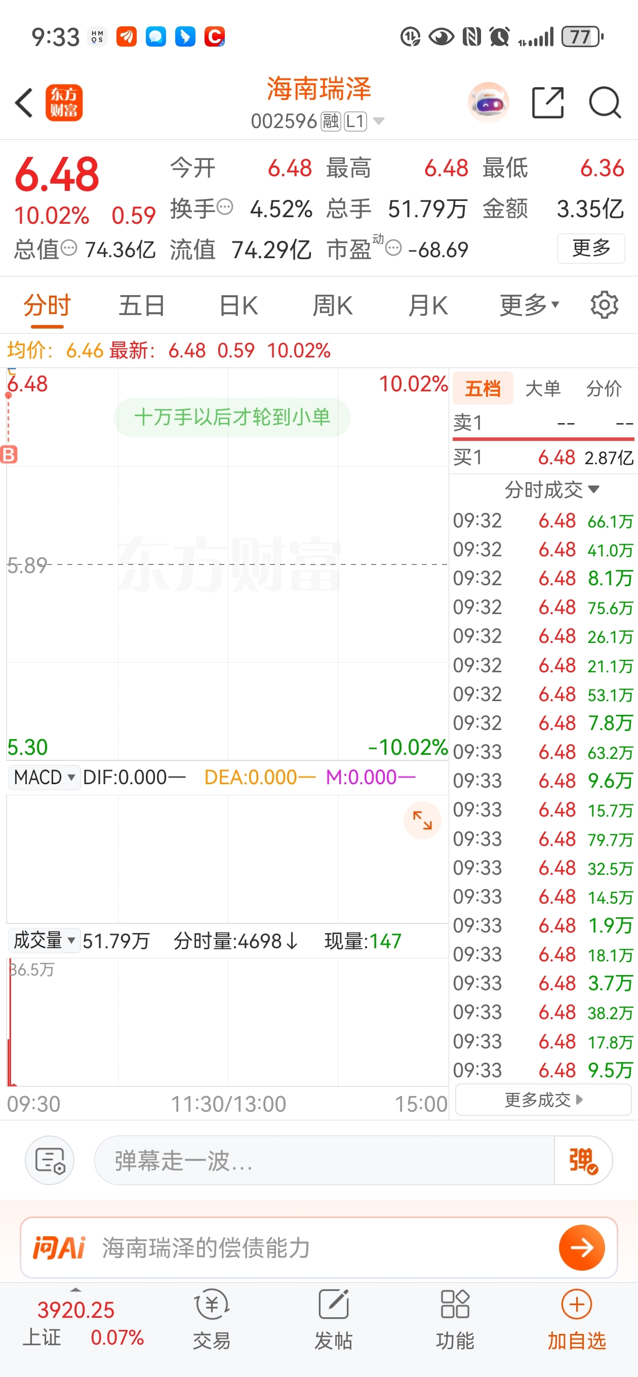 $海南瑞泽(SZ002596)$ 进来了