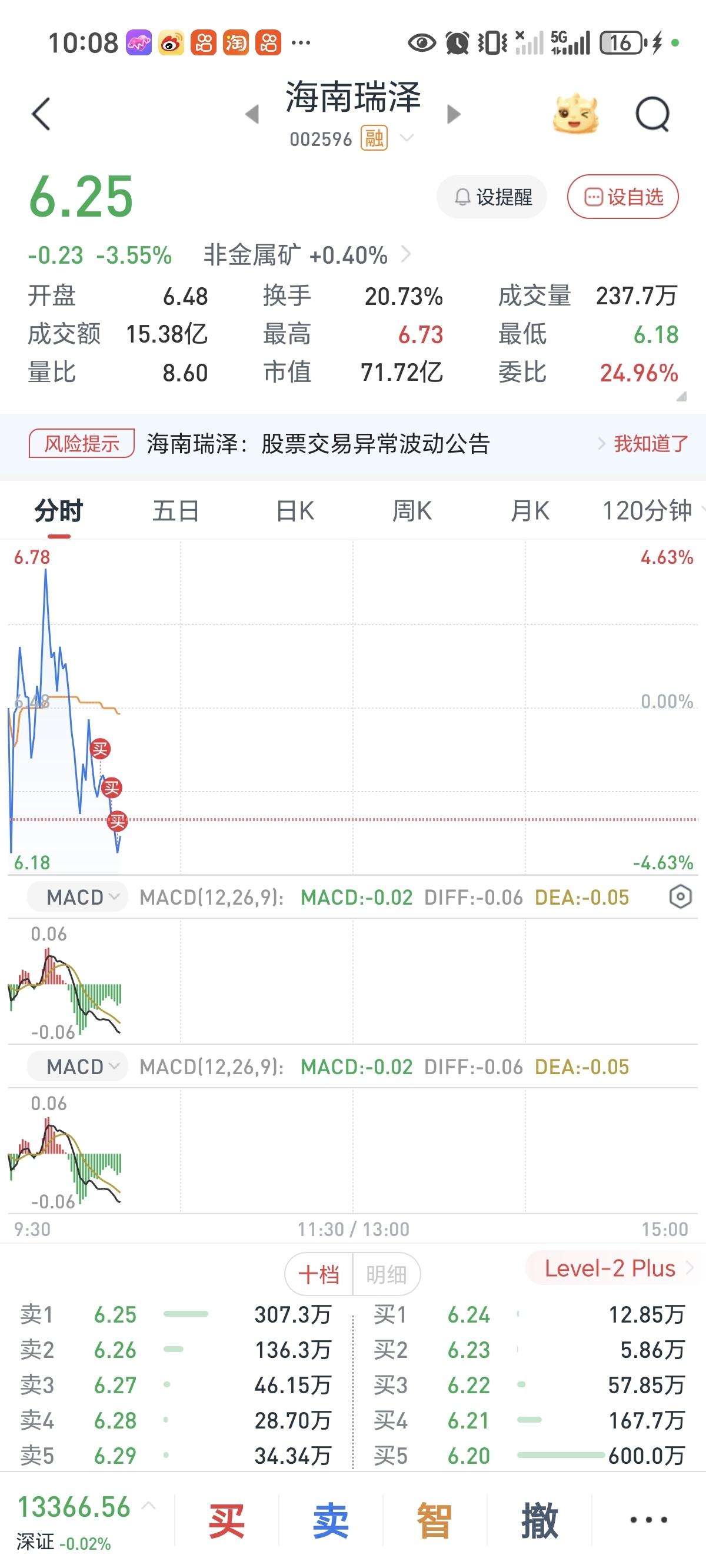 $海南瑞泽(SZ002596)$ 昨天清了,今天接回
