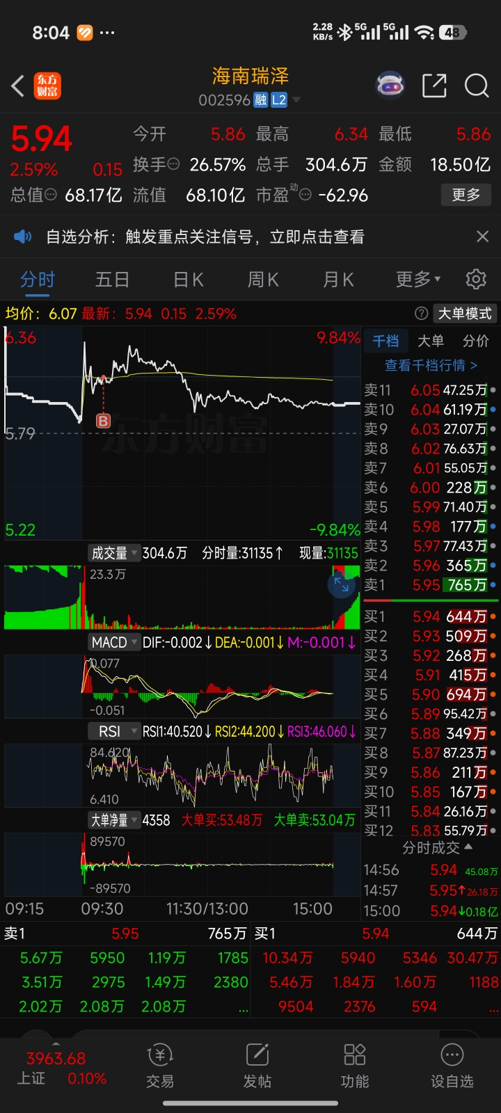 看海发上板,瑞泽弹性大过来做套利,结果把我套了