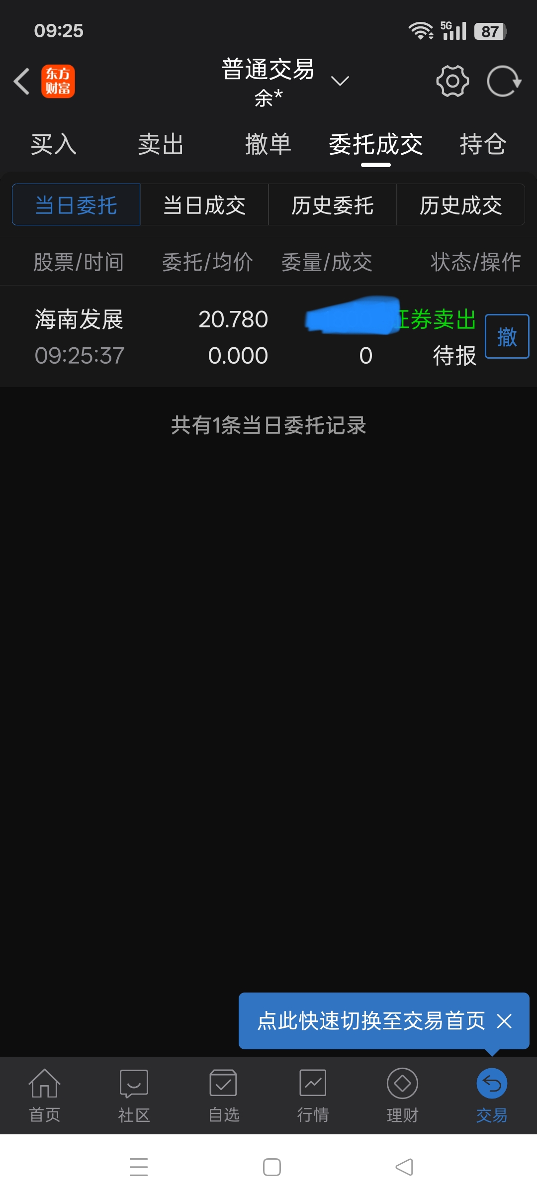 海海的瑞泽,还是5.03,海发一日游,跑了9点25我都在盘它,6个点落袋为安