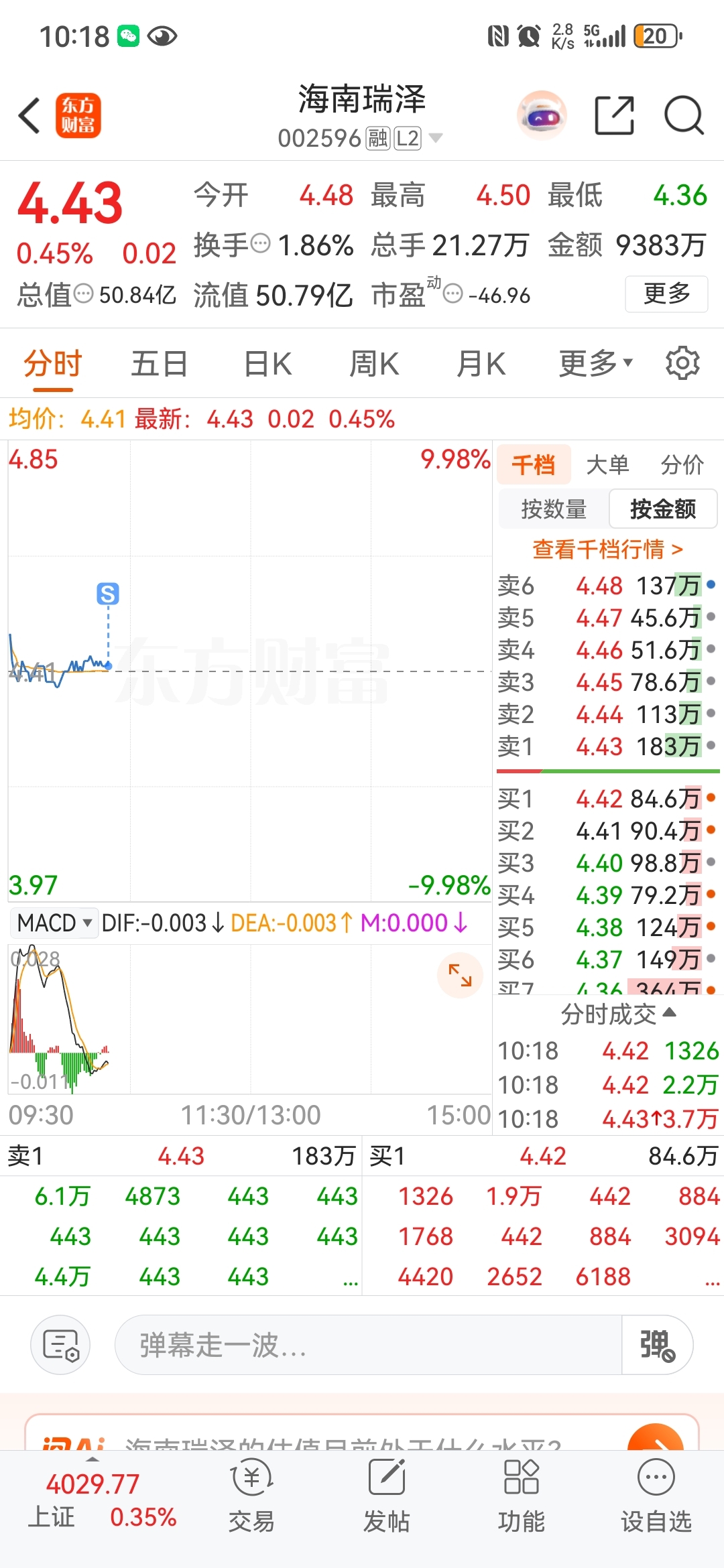 $海南瑞泽(SZ002596)$ 拉吧,老板,又我走了