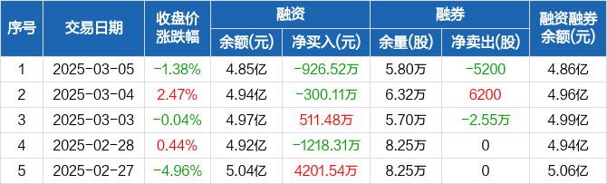金禾实业:融资净偿还926.52万元,融资余额4.85亿元(03-05)