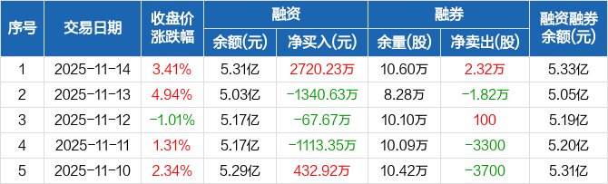 金禾实业:融资净买入2720.23万元,融资余额5.31亿元(11-14)