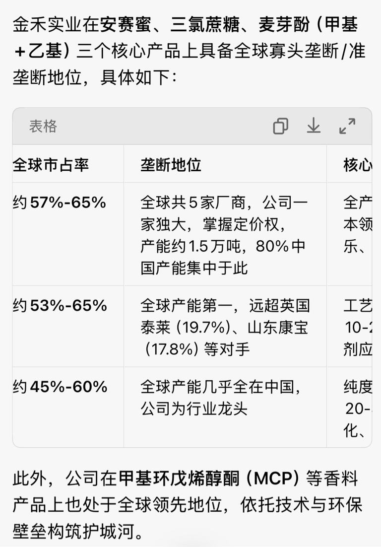$金禾实业(SZ002597)$ 管它业绩怎么样,添加剂这几个具备垄断地位。单单垄断地位这几个字就值钱,现在这价位就是公司管理层