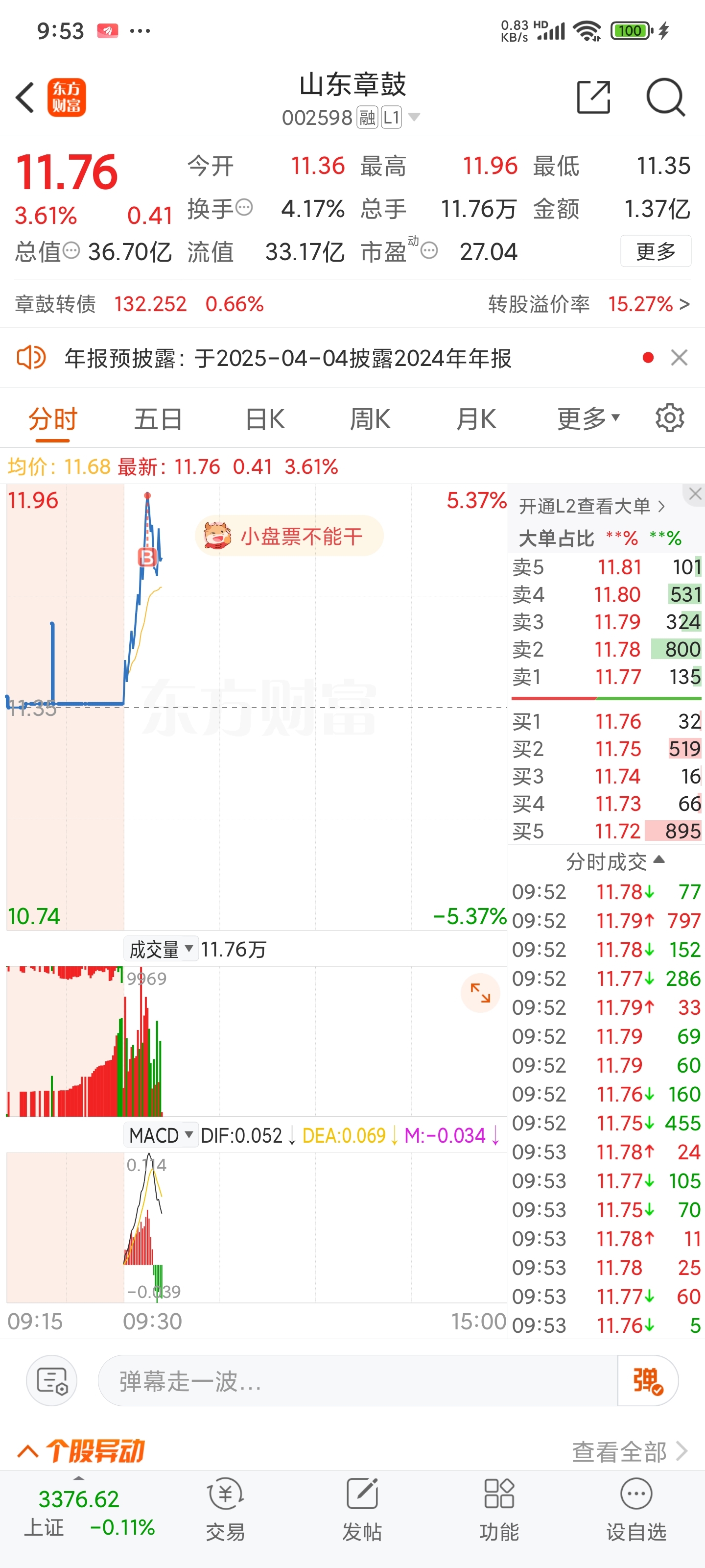 $山东章鼓(SZ002598)$ 苟䒤的你咋不涨了,我看你怎么涨