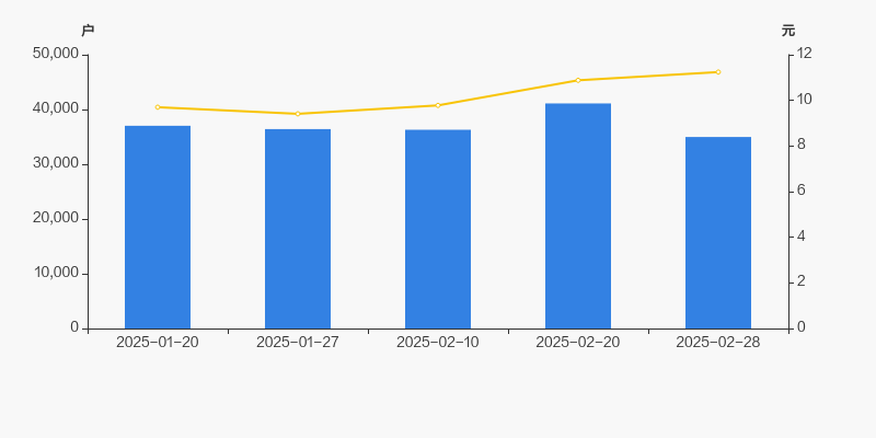 截至2025年2月28日,公司最新总股本为3.12亿股,其中流通股本为2.82亿股。户均持有流通股数量由上期的6862股上升至8065股,户均流通市值9.06万元。