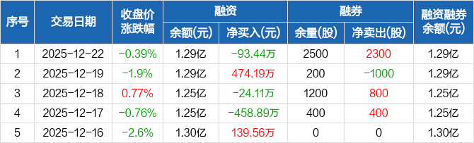 山东章鼓:融资净偿还93.44万元,融资余额1.29亿元(12-22)