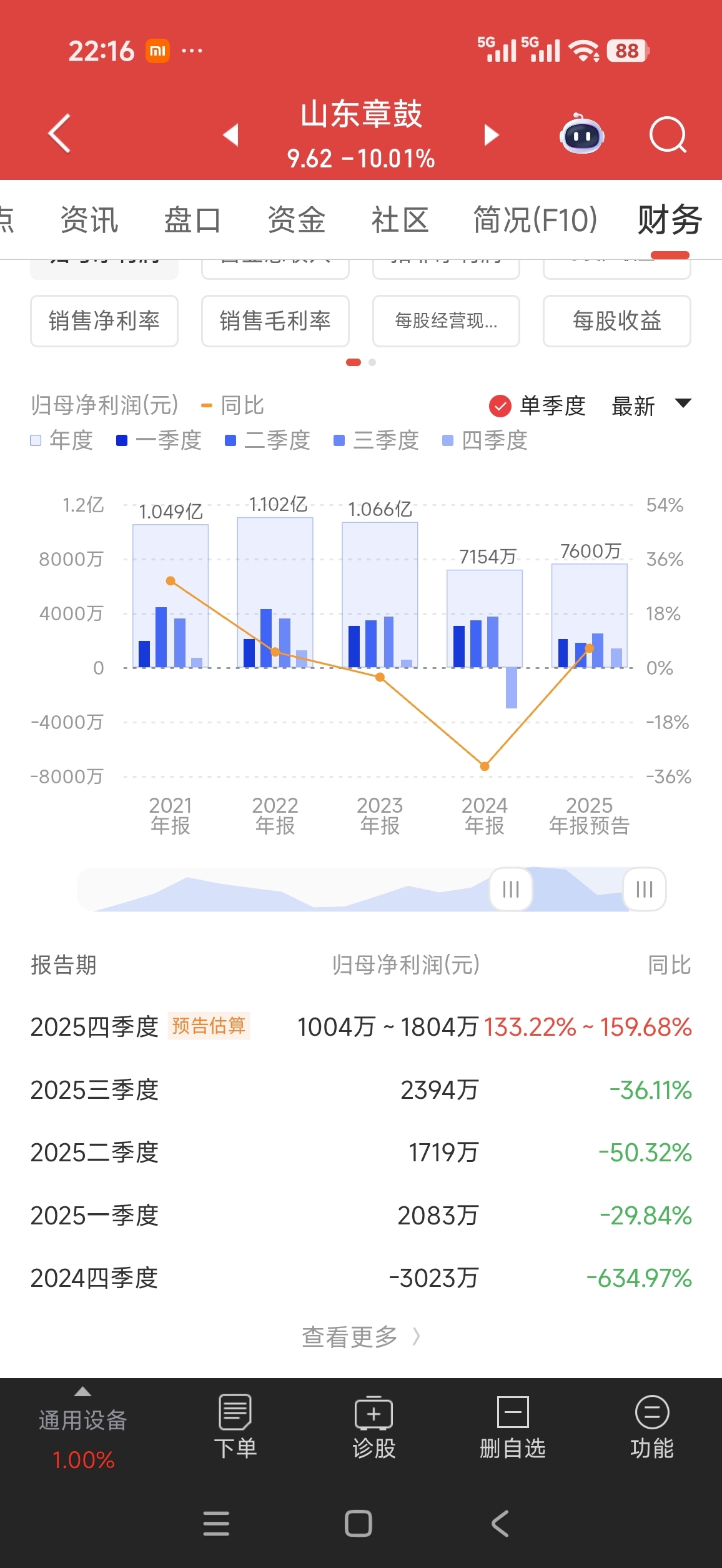 $山东章鼓(SZ002598)$ 两级反转第四季度利润增长130%