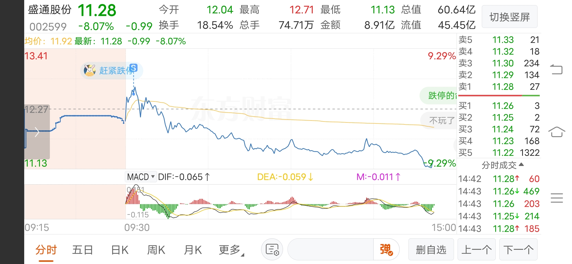 $盛通股份(SZ002599)$ 大盘都破位了,还在等奇迹