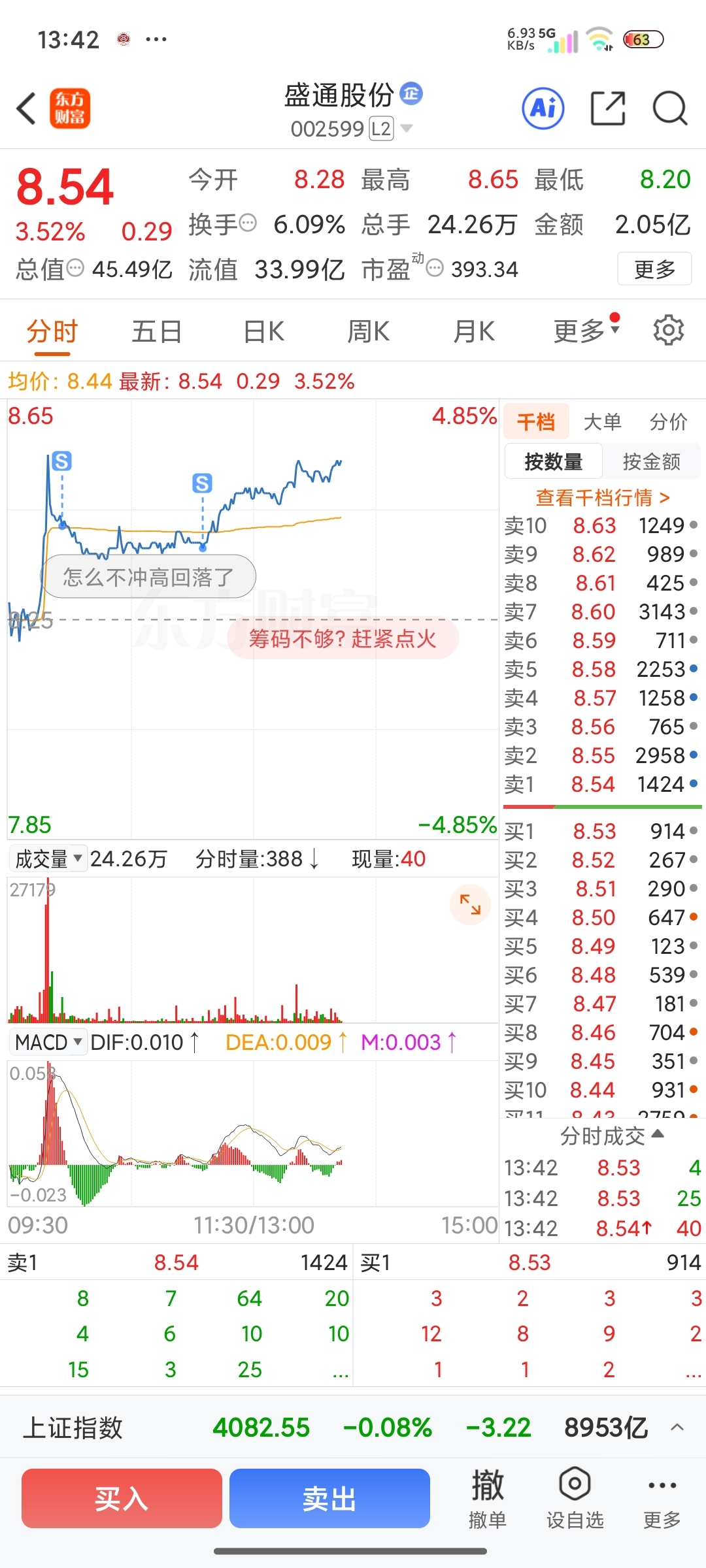 $盛通股份(SZ002599)$ 今天剧本怎么不一样,以前都是冲高回落,无语我一卖就拉